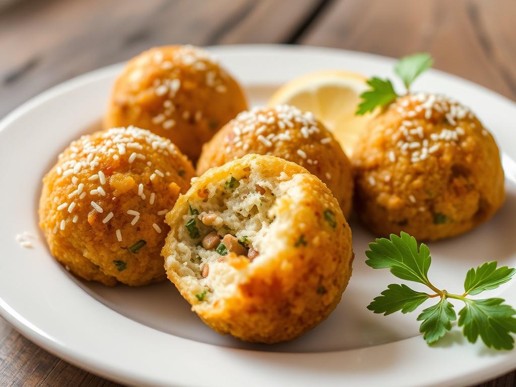 Подача с зеленью, тёртым пармезаном и лёгким соусом создаёт баланс между насыщенным вкусом и освежающей ноткой. Лучше всего жареные шарики подать горячими, чтобы аромат и текстура сохранились. Для особого акцента можно дополнительно посыпать шарики щепоткой острого перца или каплей лимонного сока — небольшие акценты, которые раскрывают вкус иначе.