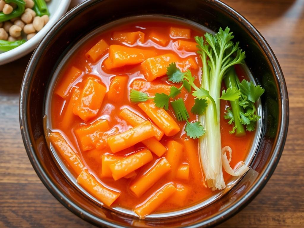 Помимо баэчу кимчи существуют и другие популярные варианты, которые отражают специфику региона. kkakdugi — это редьковый кимчи, где крупные кубики редьки пропитываются специями и солью, давая хрустящую текстуру и яркий послевкусие. oi kimchi — огуречный кимчи, который чаще всего готовят летом, когда свежие огурцы оказываются под рукой, и он становится лёгким и освежающим.