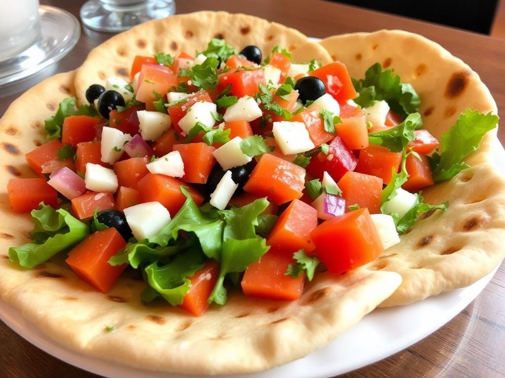 Ингредиенты можно варьировать в зависимости от сезона и предпочтений. Вариант с гранатовыми зернами добавляет нежную сладость и цвет, а фета или козий сыр придают блюду более сытный характер. Важно, чтобы зелень была свежей, а помидоры — яркими и сочными. Хруст лепёшек задаёт тон всему блюду, поэтому их выбор и степень поджаривания имеют значение.