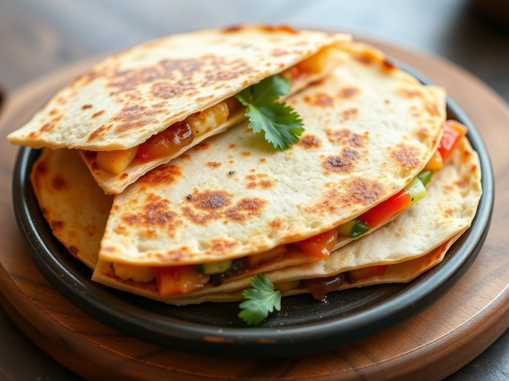 Если хочется сделать подачу более «ресторанной», можно упаковать кесадильи на тарелке так, чтобы края выглядели ровными, а середина была ещё тягучей. Подайте на большом блюде, сверху посыпьте кайенским перцем или молотой паприкой — легкий намек на пикантность не повредит. В конечном счёте, речь идёт о настроении вечера: простота и удовольствие в одном блюде.
